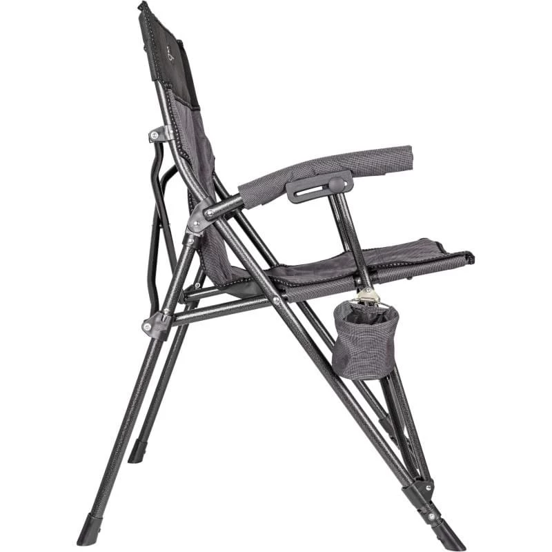 Ook handig is de aparte bekerhouder aan de zijkant van de stoel in plaats van in de armleuning zoals bij de meeste vouwstoelen. Hij is wel wat groter om mee te nemen maar daar krijg je dan ook wat voor terug aan comfort.