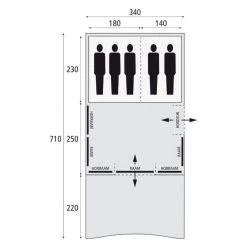 Verder beschikt deze veelzijdige tent nog over een volledige horrengaasdeur en er zit horrengaas aan de achterzijde van de binnentent. Aan weerzijden van de tent zit een handig stroomkabel doorvoersysteem die voorzien is van ritssluitingen.