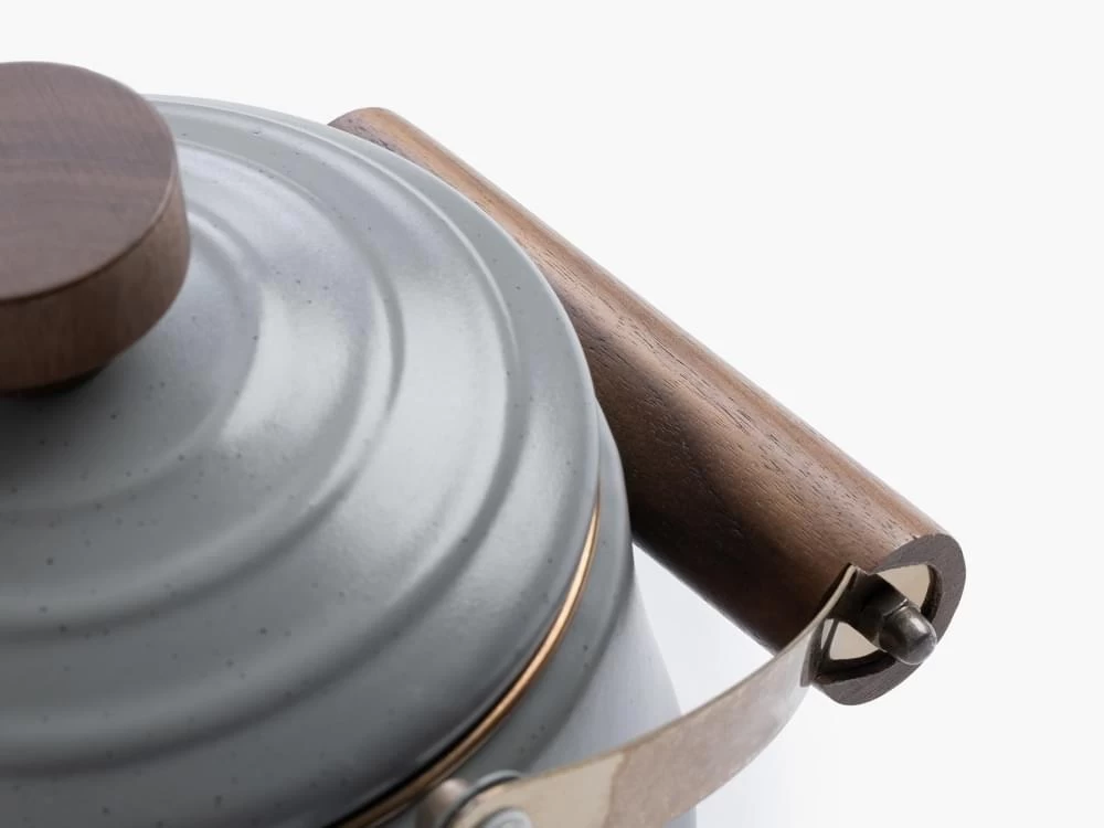 Een geweldige aanvulling op je kampeer- of kookset thuis: de Enamel Theepot Stone Grey van Barebones. Gebruik de geëmailleerde, stalen theepot om heerlijke warme dranken zoals koffie, thee, of warme chocolademelk te maken. De theepot is tot 700 graden in de oven of op open vuur te gebruiken. De theepot is niet in de magnetron te gebruiken. De pot heeft een koperkleurige RVS stootrand.