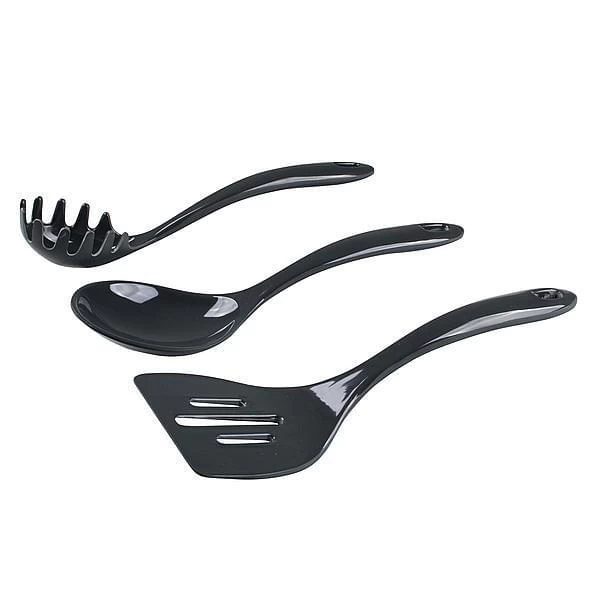 Koken, roeren, bakken, opscheppen alles wat je tijdens het koken nodig hebt zit in deze 3–delig Opscheplepel set van Bo–Camp. Met een stijlvolle zwarte kleur past het overal bij. De set is gemaakt van 100% melamine en is BPA-vrij. Ze kunnen gewoon in de vaatwasser, zijn kraswerend en vrijwel onbreekbaar.