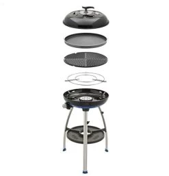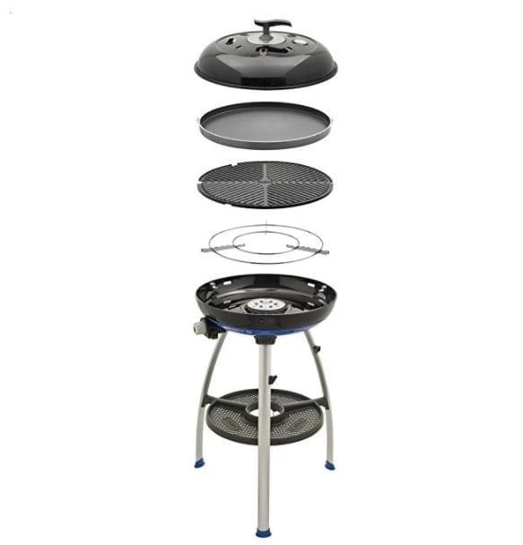 De Cadac Carri Chef 50 is één van de meest complete gasbarbecues. Deze Bbq/Chef Pan Combo bevat een pandrager, een barbecueplaat, een mooie platte Chef pan en een deksel. De Carri Chef 50 staat op 3 stevige, afneembare poten waartussen een rekje geplaatst is. Dit verwijderbare rekje zorgt niet alleen voor extra stabiliteit, maar zorgt ook voor wat ruimte om bijvoorbeeld kruiden of barbecuegereedschap neer te leggen. Ontsteking van de Carri Chef 50 kan zeer eenvoudig door middel van de piëzo knop. Hierna is de brander traploos instelbaar. Na gebruik kan de BBQ compact worden opgeborgen in de meegeleverde draagtas.