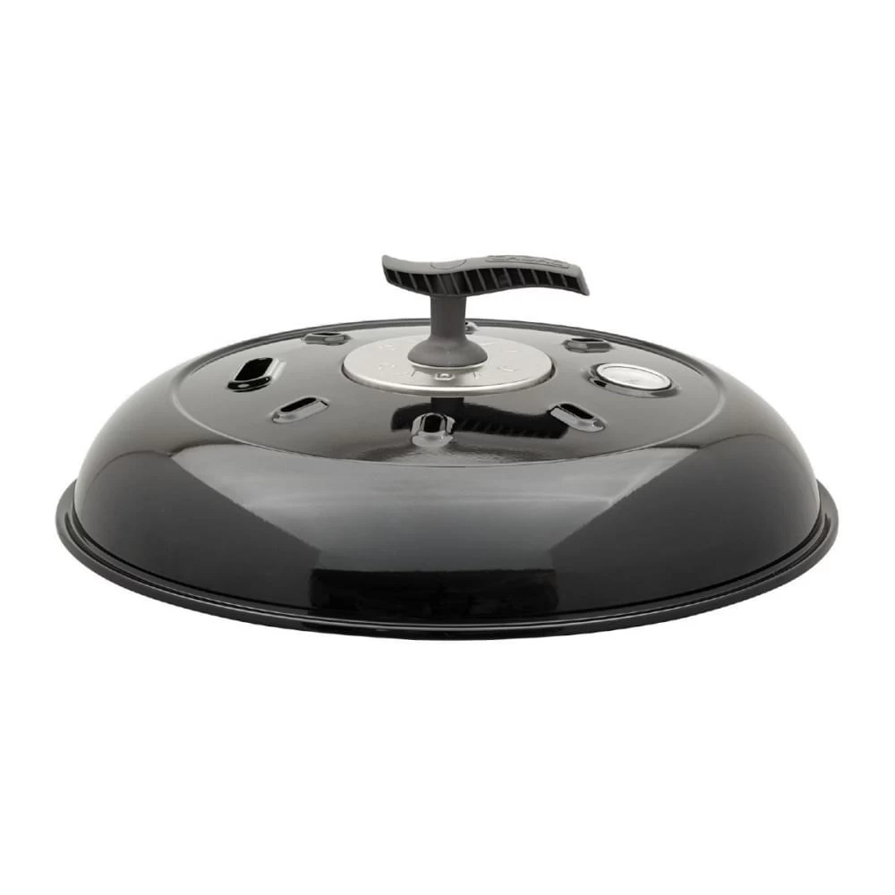 Doordat er gaatjes in het deksel zitten ontstaat er een constante temperatuur die weer af te lezen is op de thermometer die in het deksel verwerkt is. Soms is het handig om een windscherm bij de barbecue te hebben, gebruik daar de Dome voor. Plaats hem eenvoudig aan de zijkant van je BBQ en je hebt een windscherm.