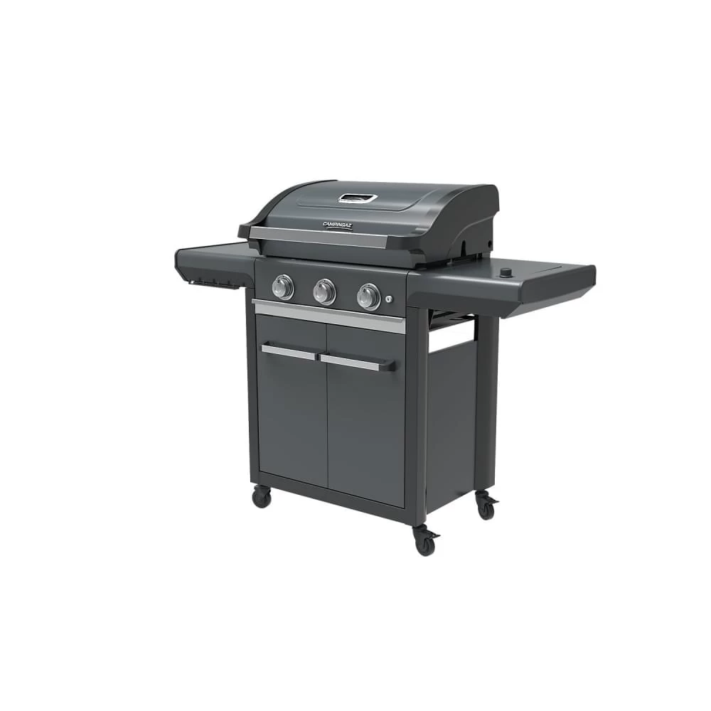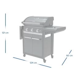 De perfecte barbecue voor het houden van een feestje voor familie en vrienden. De 3 series Premium S gasbarbecue van Campingaz is voorzien van krachtige rvs-branders met het efficiënte Blue Flame Power System. Dit systeem zorgt voor aanzienlijk minder vlammen waardoor het vlees sappig en smaakvol blijft. Daarnaast kan je de bbq gemakkelijk ontsteken door de elektrische piëzo. Het kookoppervlak heeft een grootte van wel 2806 cm² en het rooster is gemaakt van geëmailleerd gietijzer. De zijtafel is voorzien van een brander voor het opwarmen van bijvoorbeeld de pindasaus. De andere zijtafel kan opgeklapt worden zodat de barbecue minder ruimte inneemt wanneer je deze niet gebruikt en de barbecue is ook gemakkelijk te verplaatsen door de vier afzonderlijk bestuurbare wieltjes. Deze buitenkeuken is ook voorzien van twee deurtjes voor het gemakkelijk opbergen van je gasfles.