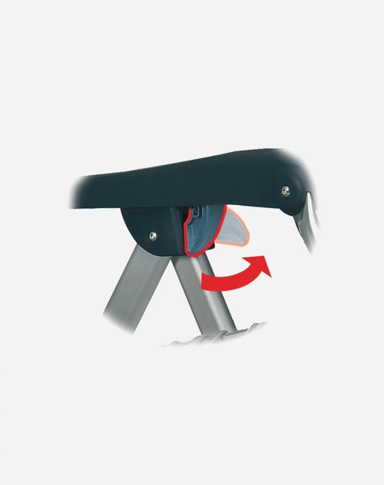 Door met je rug tegen de rugleuning aan te duwen, de voeten op de onderste stang te zetten en dan de hakken omhoog te duwen. Wanneer je de juiste stand hebt gevonden klem je het frame vast door de vleugeltjes die onder de armleuning zitten naar binnen of naar buiten te vouwen.