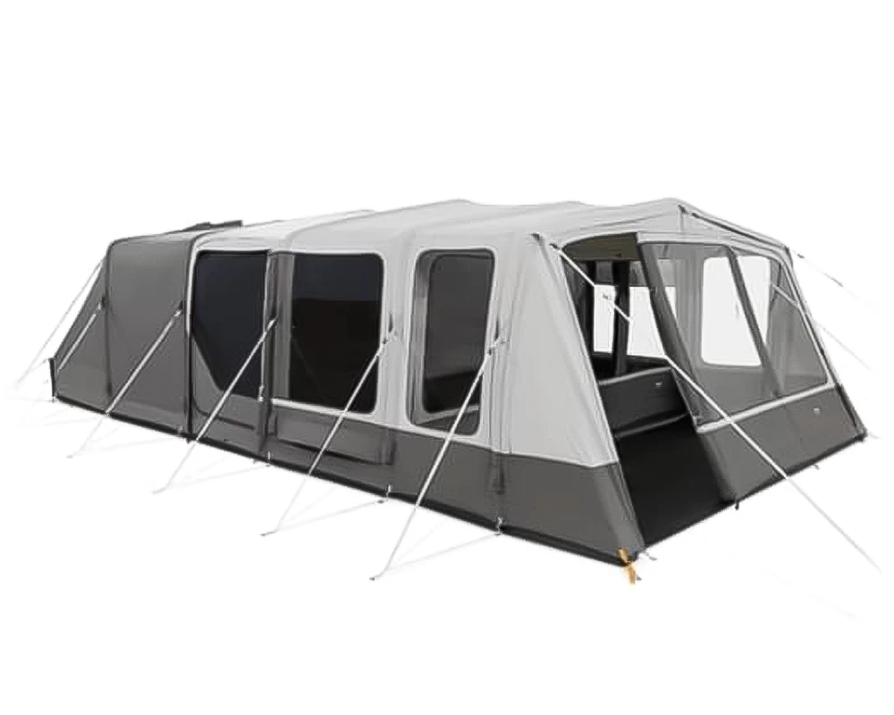 Het middenstuk van de binnentent heeft een afmeting van 2,85 meter bij 3,2 meter en een stahoogte van 2,1 meter zodat je comfortabel in je tent kan staan. De Air Frame constructie zorgt naar verhouding voor rechte zijwanden zodat je alle ruimte in je tent goed kan benutten. De voortent is 1,8 meter diep over de volledige breedte van de tent. Daarnaast kan je de voorwand van de tent eruit ritsen om zo een naadloze doorgang te maken.