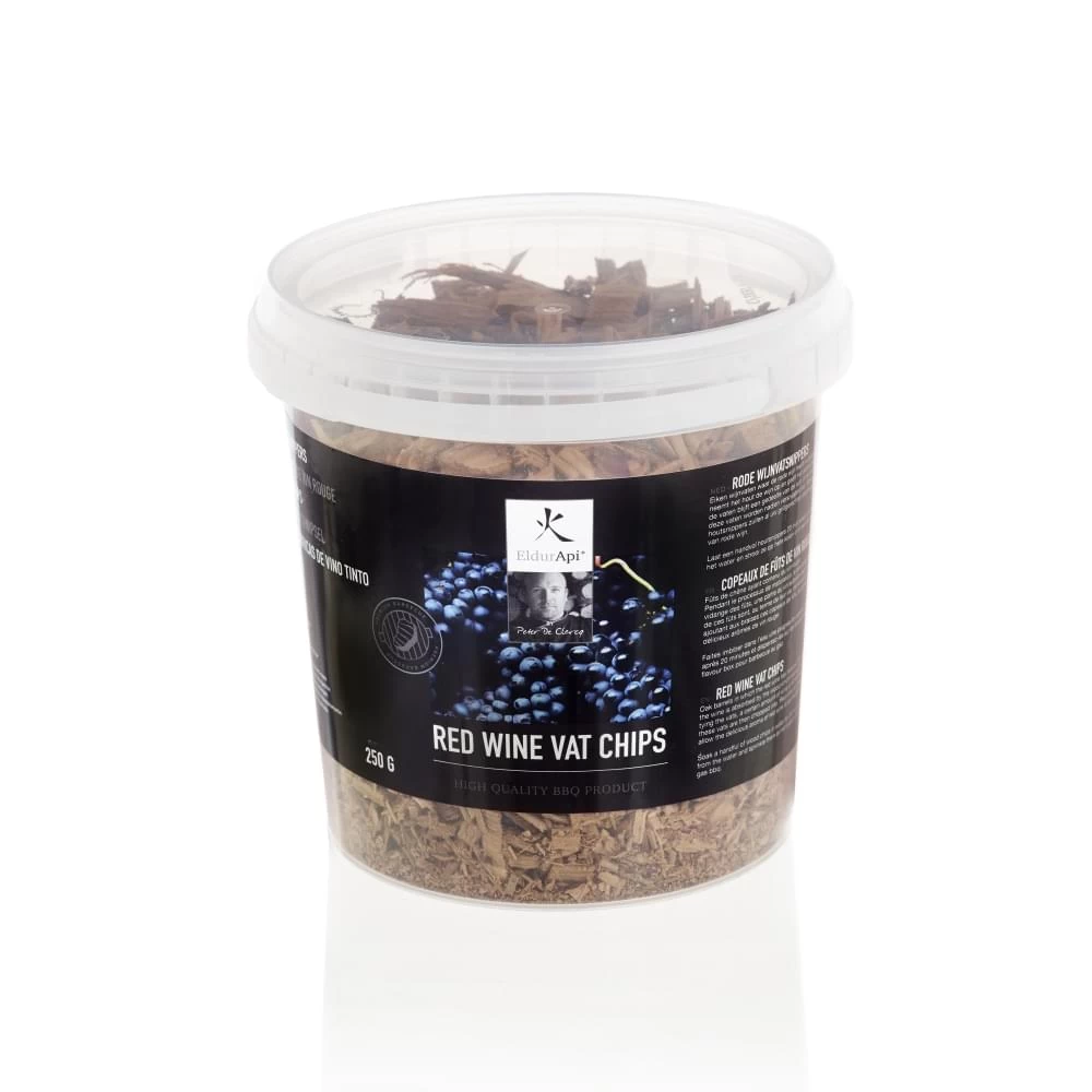 Eiken wijnvaten waar de rode wijn heeft in gerijpt. Tijdens het rijpingsproces neemt het hout de wijn op en geeft het aroma dan weer af. Na lediging van de vaten blijft een gedeelte van de wijn in het hout achter. Sommige van deze vaten worden nadien versnipperd tot “Red wine barrel chips”.