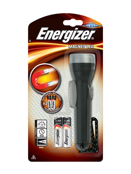 Een handige 1 Toorts zaklamp van het merk Energizer. De lamp werkt op 2 AA batterijen en heeft een magneet op het handvat. De lamp wordt geleverd met 2 AA batterijen.
