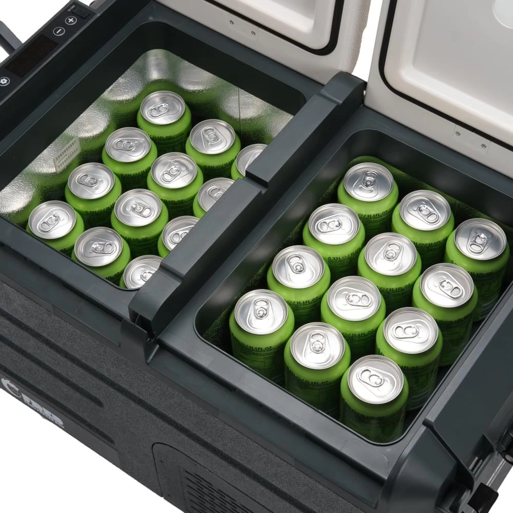 Het bijzondere aan de Fred koelboxen is dat ze niet alleen kunnen koelen, maar dat ze ook kunnen vriezen! Zo kan je zelf bepalen hoe koud je de temperatuur in de koelbox wilt hebben. Je kiest voor koelen wanneer je alleen je eten en drinken koel wilt houden. Heb je ijsjes meegenomen of andere diepvriesproducten dan kies je op het display voor vriezen. De Double Fred koelbox heeft twee compartimenten. Het is mogelijk om allebei te laten koelen of vriezen, of je laat de ene koelen en het andere compartiment vriezen. Zo simpel kan het zijn!