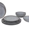 Met deze 12-delige camping servies set van Kampa kan je 4-personen laten genieten van alle maaltijden van de dag. Gemaakt van melamine kan het Ebony Cobble servies een stootje hebben en mag je deze ook in de vaatwasser doen.