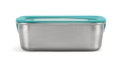 Duurzaam en 100% plastic vrij lunchen met de luxe uitstraling van roestvrij staal. De Lunch box van heeft het. Je bammetjes, salade, fruit of leftovers passen met gemak in de ruime box van 591 ml die makkelijk af te sluiten is met de RVS deksel met siliconen rand. Deze siliconen rand heeft ook nog eens een wat grotere flexibele hoek om hem eenvoudig te openen, fijn voor bijvoorbeeld de kinderen. Door het Snap-and-Lock systeem sluit het deksel perfect af waardoor je de lunchbox lekvrij in elke tas kunt meenemen.