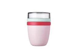 In de deksel van de Lunchpot Ellipse van Mepal doe je de muesli, blauwe bessen of andere toppings. In de beker neem je yoghurt of kwark mee. En is het tijd om te lunchen dan doe je de topping op je yoghurt, of je kan er natuurlijk ook voor kiezen om het fruit later op te eten.