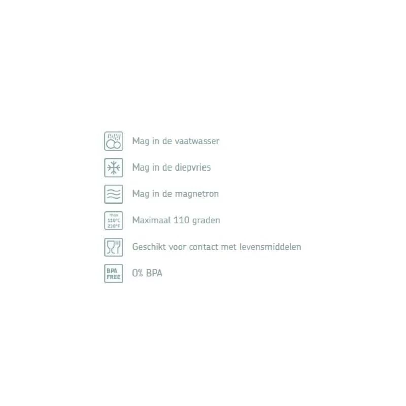 De schaal is geschikt voor de koelkast, vriezer en magnetron. Hij kan ook in de vaatwasser.