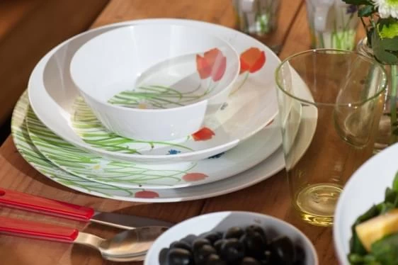 De bordenserie Flow kenmerkt zich door de leuke prints! Het is een modern en stijlvol servies en erg handig voor op vakantie. Deze ontbijtborden hebben een diameter van 230 mm en kunnen gewoon in de vaatwasser. Materiaal: melamine