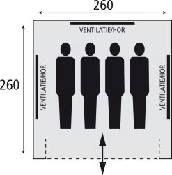 De grote voorwand is helemaal weg te rollen waardoor je snel de tent in kunt. Doordat er geen voortent aanwezig is dien je alle spullen mee te nemen in het slaapgedeelte zelf. Deze kun je aan het voeteneinde kwijt. Met 3 personen heb je uiteraard meer ruimte in de tent en kun je makkelijker de spullen stallen zonder dat dit in de weg ligt tijdens het slapen.