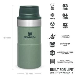 Voor wie vroeg op pad moet kan wel een sterk kopje koffie gebruiken om wakker te worden. Als geen ander heeft Stanley een thermosbeker in het assortiment die aan alle eisen voldoet. De beker is lekvrij, houd je kopje koffie of andere warme drank tot wel 3 uur warm en kan gewoon in de vaatwasser.