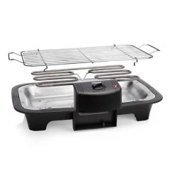 De BQ-2813 tafel bbq is voorzien van een waterbak waarin het vet opgevangen wordt. Hierdoor heb je niet of nauwelijks last van rookwalmen wanneer je aan het barbecueën bent. Dankzij het ruime grillrooster kan je tegelijkertijd verschillende soorten vlees, vis en groenten grillen. Het rooster is in hoogte te verstellen zodat je zelf de afstand tot het grillelement kan bepalen. Ook de temperatuur is traploos verstelbaar en zo kan je alles bereiden op deze elektrische tafel bbq. Na afloop leeg je de waterbak en stop je het rooster in de vaatwasser. Nog even het verwarmingselement losmaken en schoonmaken en de elektrische tafel bbq is weer klaar voor een volgend barbecue feestje.