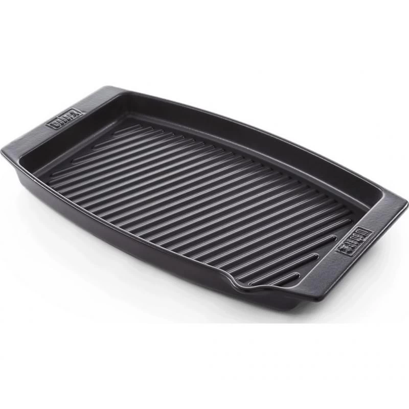 De keramische grillpan van Weber is perfect voor het grillen en serveren van bijvoorbeeld vis, vlees, groenten en kleinere gerechten die anders door het rooster zouden vallen. De geribbelde bodem geeft mooie grillstrepen aan vlees. Het keramiek is kras- en vaatwasmachinebestendig.